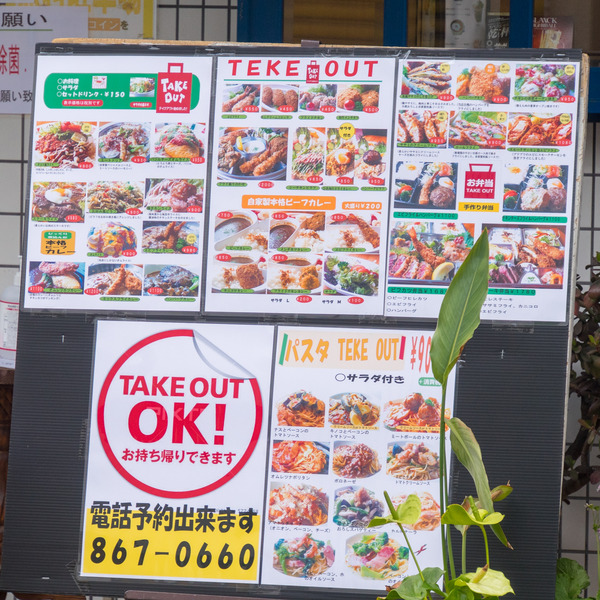 テイクアウトできる商品のうちのタコライスとキーマカレー。