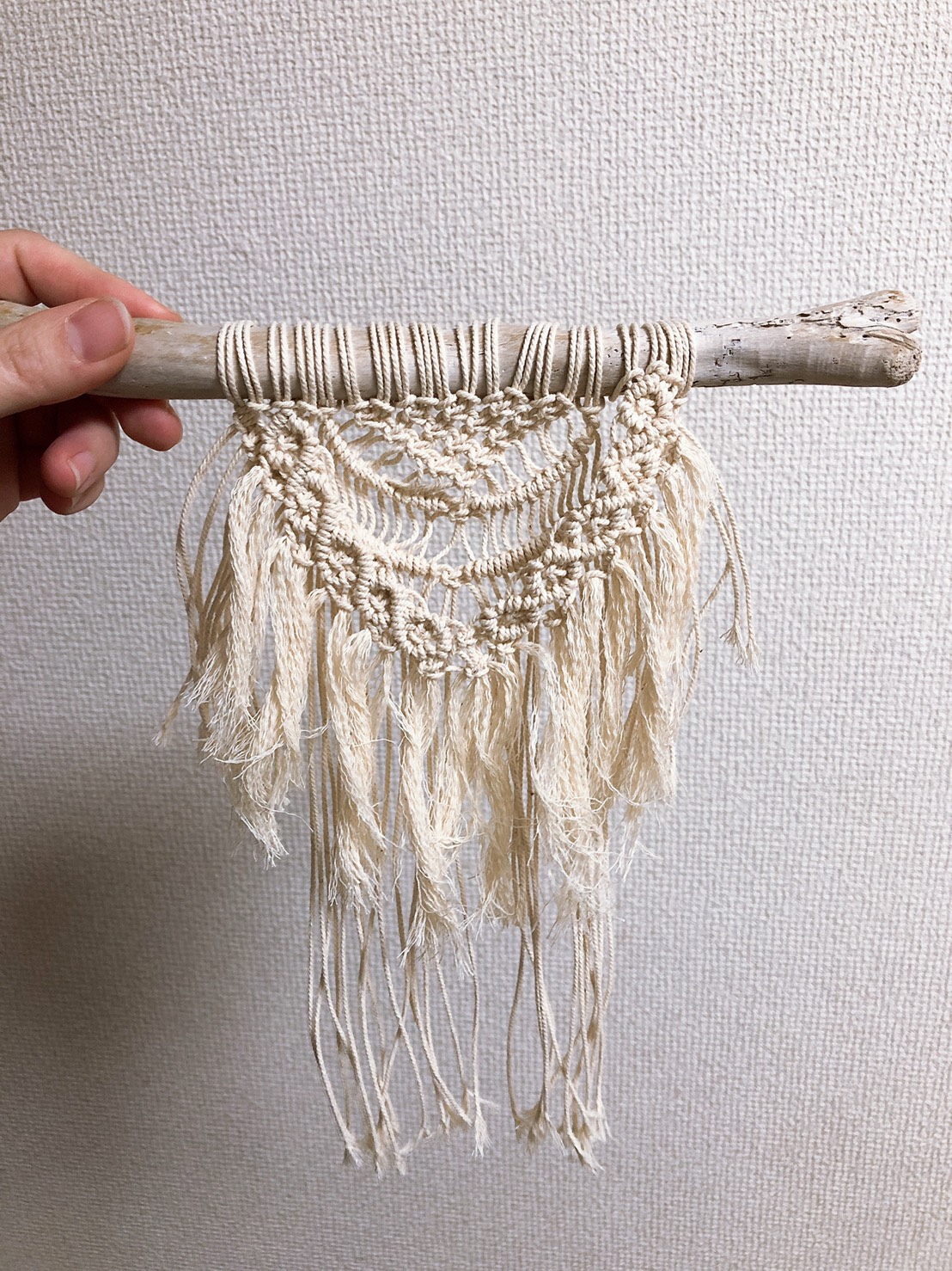 麻ひもとナチュラルテイストのピンチを釘にひっかけてレイアウト。確かにこういう麻ひも&ピンチはくずはモールのナチュラルキッチンとかで販売していますね。
