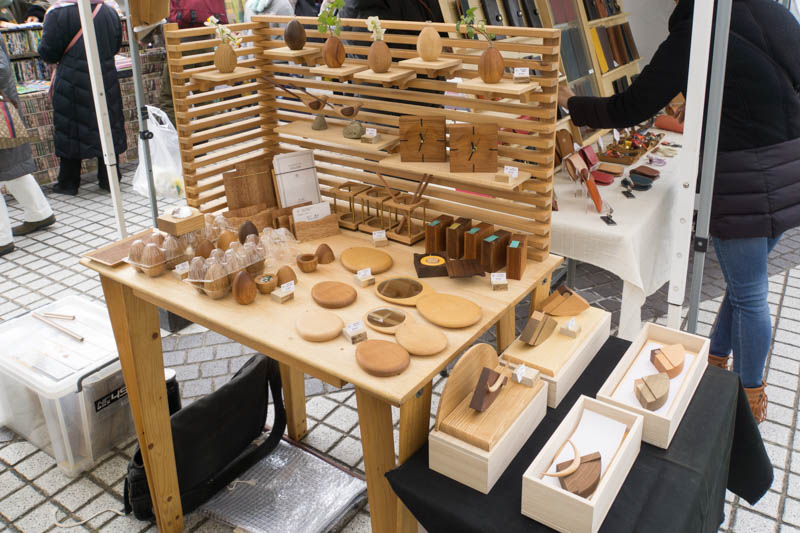 こちらは「nobu notes」さん。見て分かる通り、木の小物のお店です。