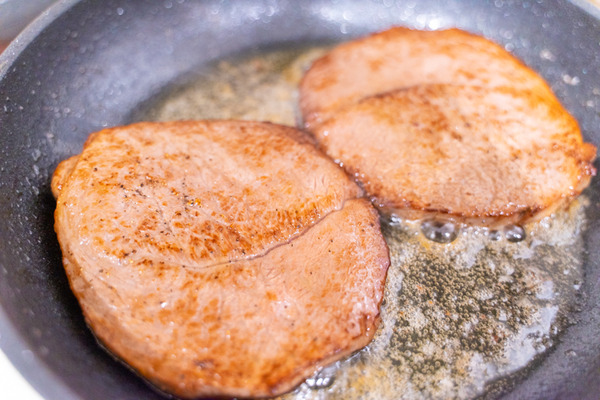 僕はスジ切って叩いて、フライパンを高温に熱したら10秒焼いてひっくり返し、両面焼くと2分休ませる。それを繰り返すことにより予熱でお肉内の温度を70℃以下に……みたいな派です。