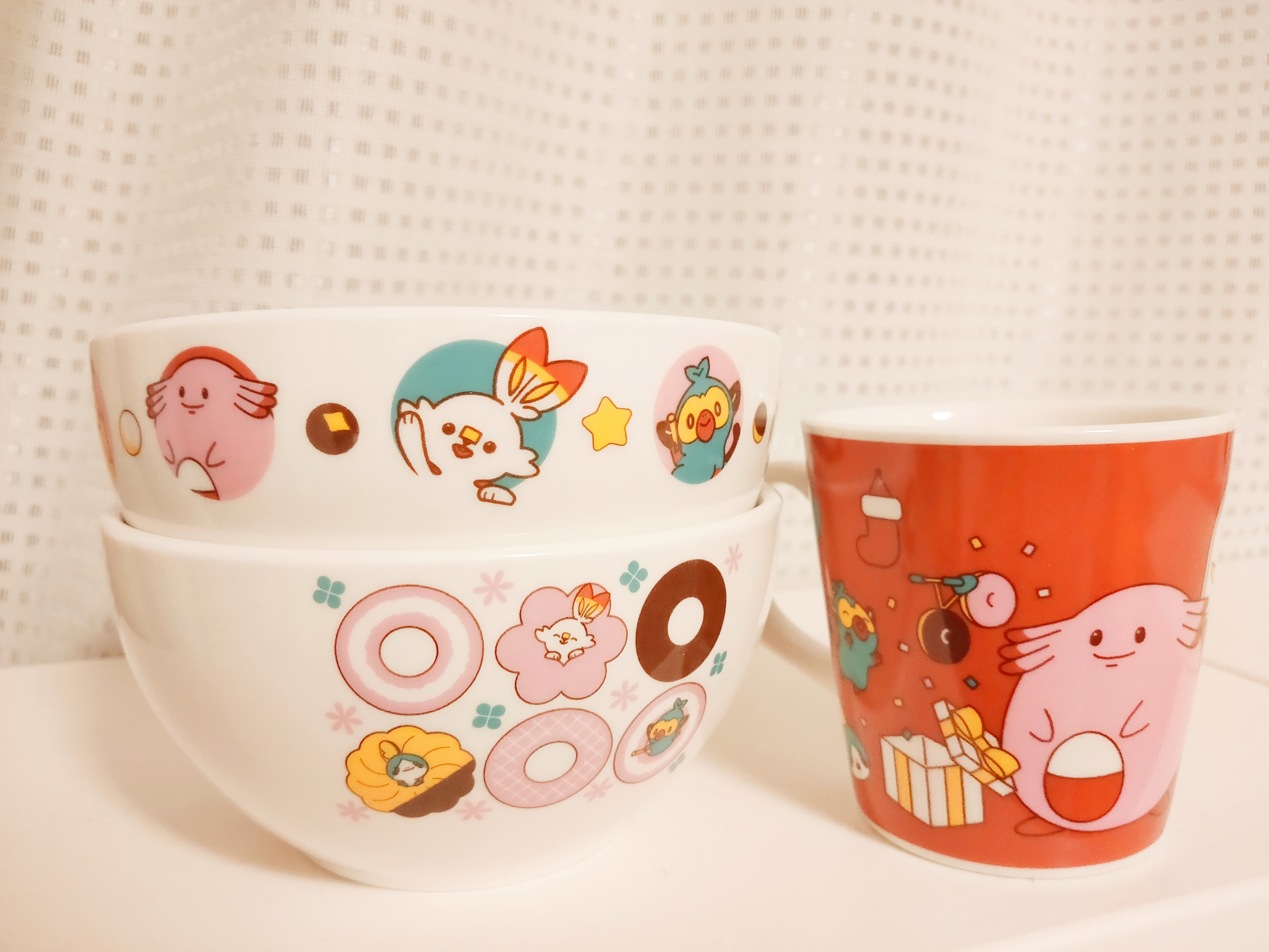 ポケモンのドーナツとボウル・マグカップがセットになったもの。ボウルは子ども用の丼ぶりにちょうどよくて使いやすいです。