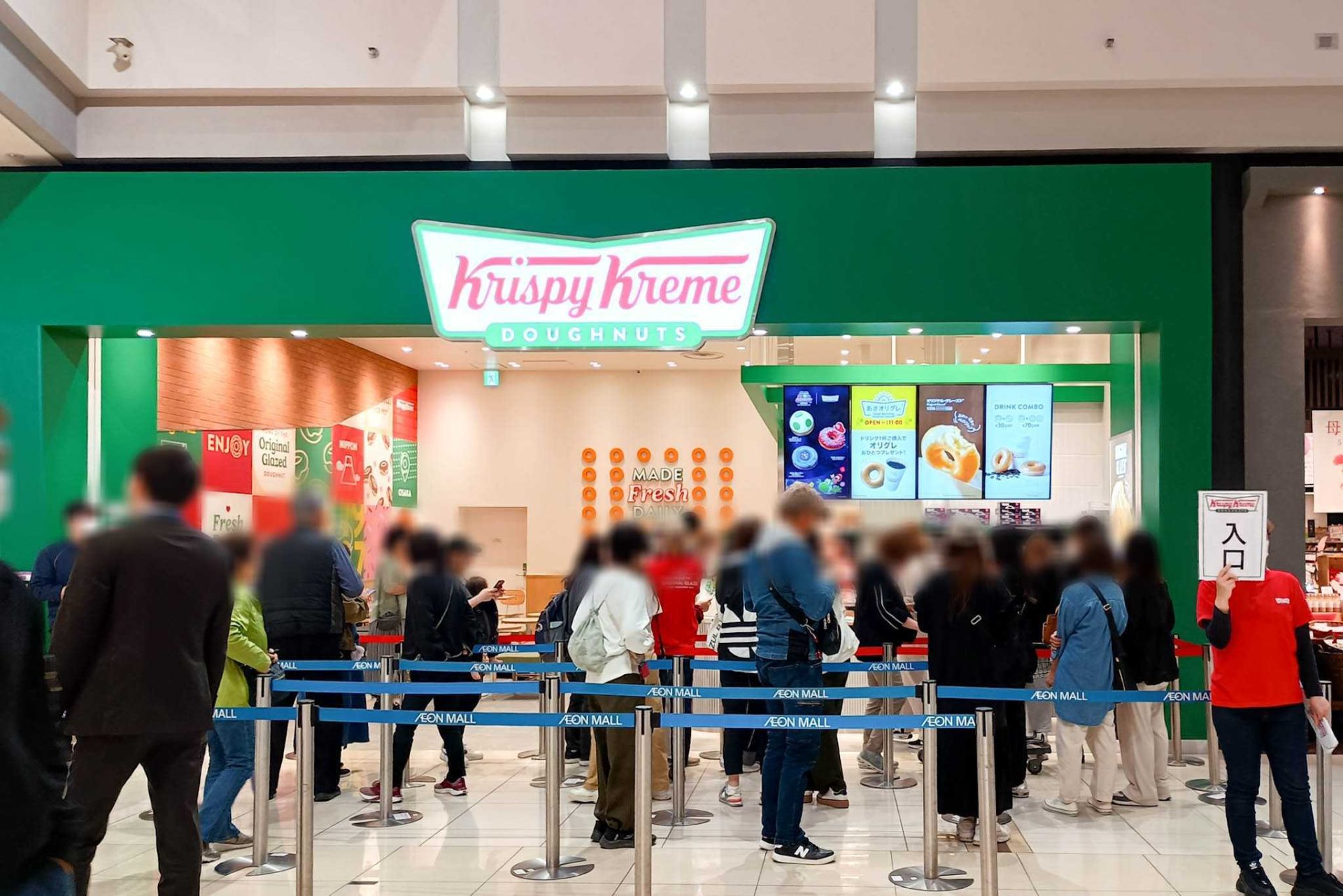 イオンモール四條畷につくってた「クリスピー・クリーム・ドーナツ」がオープンしてる。開店直後から行列できてた
