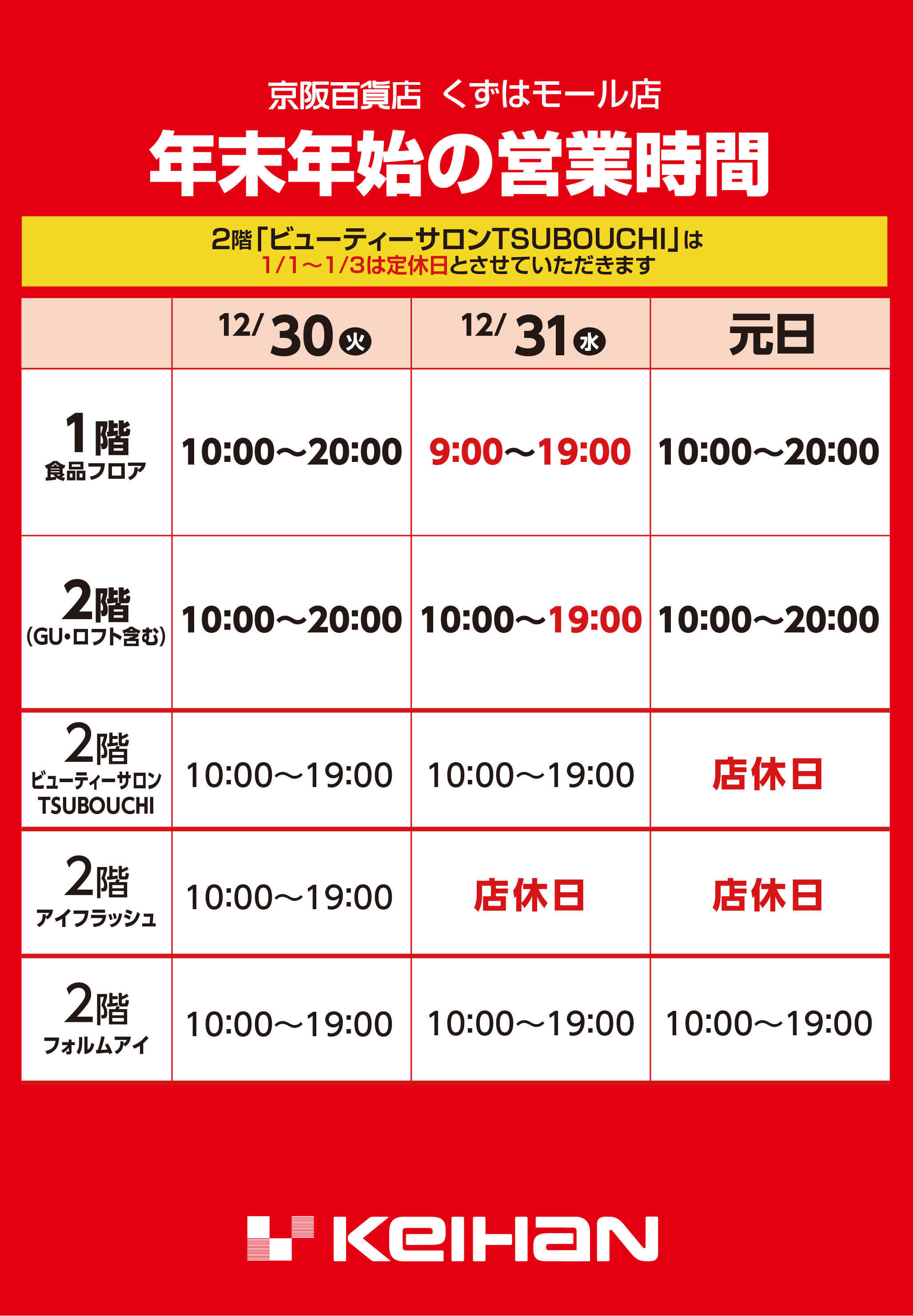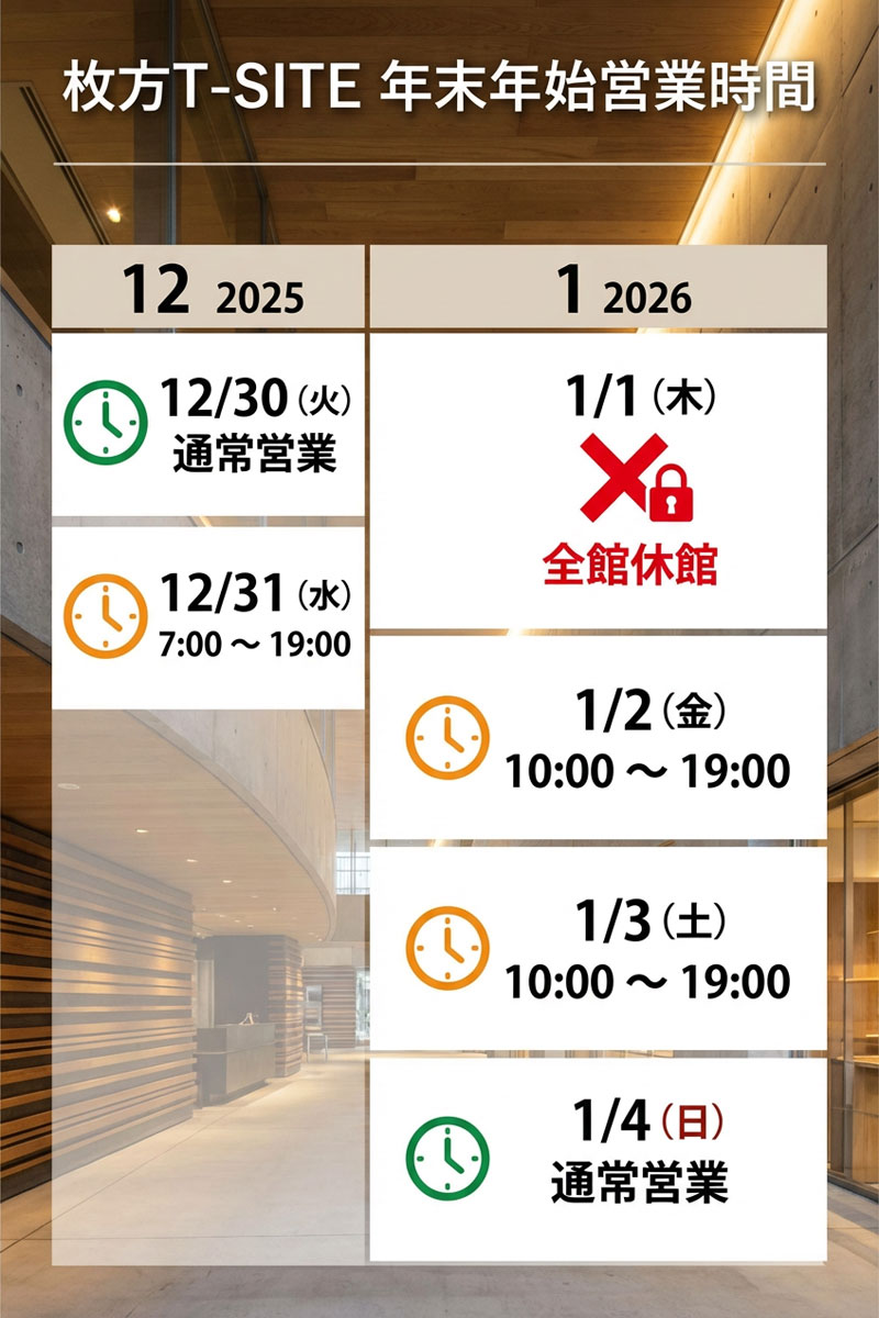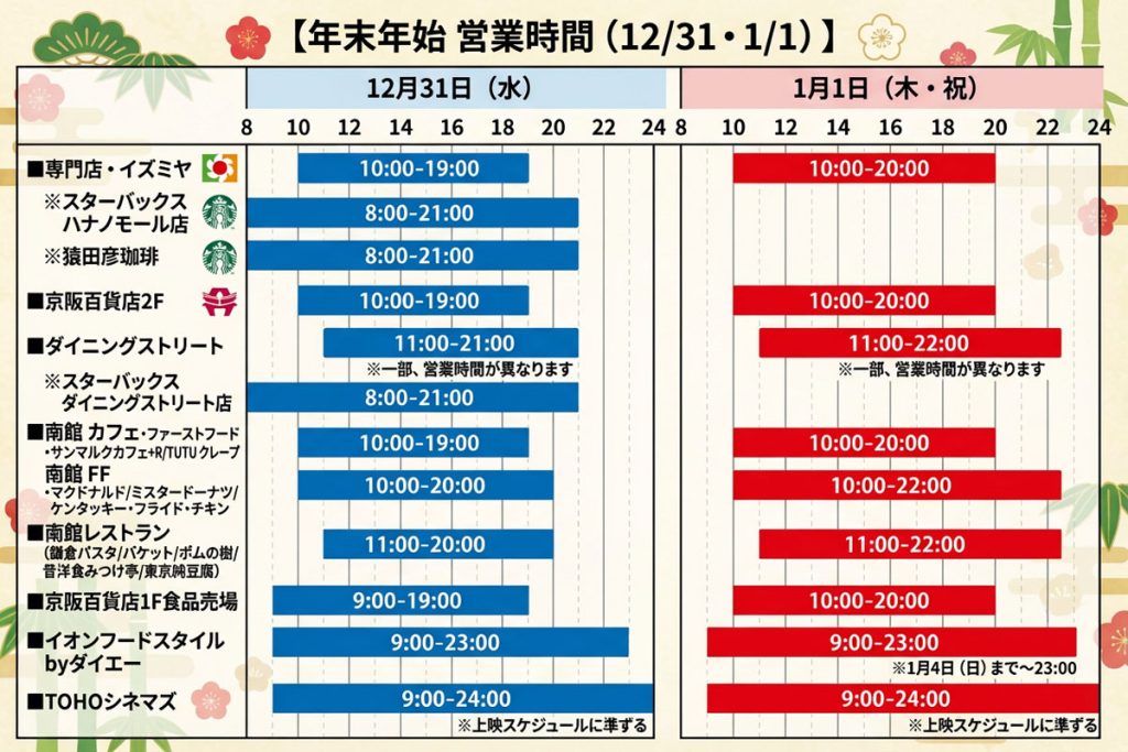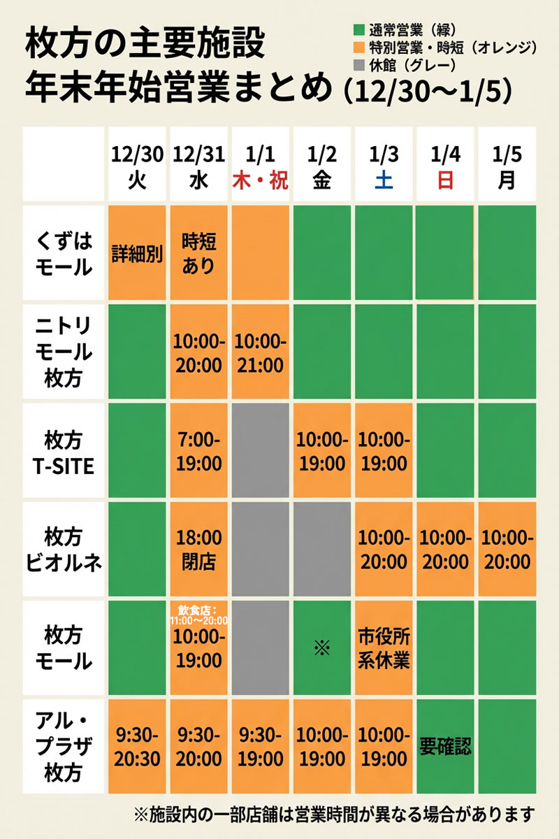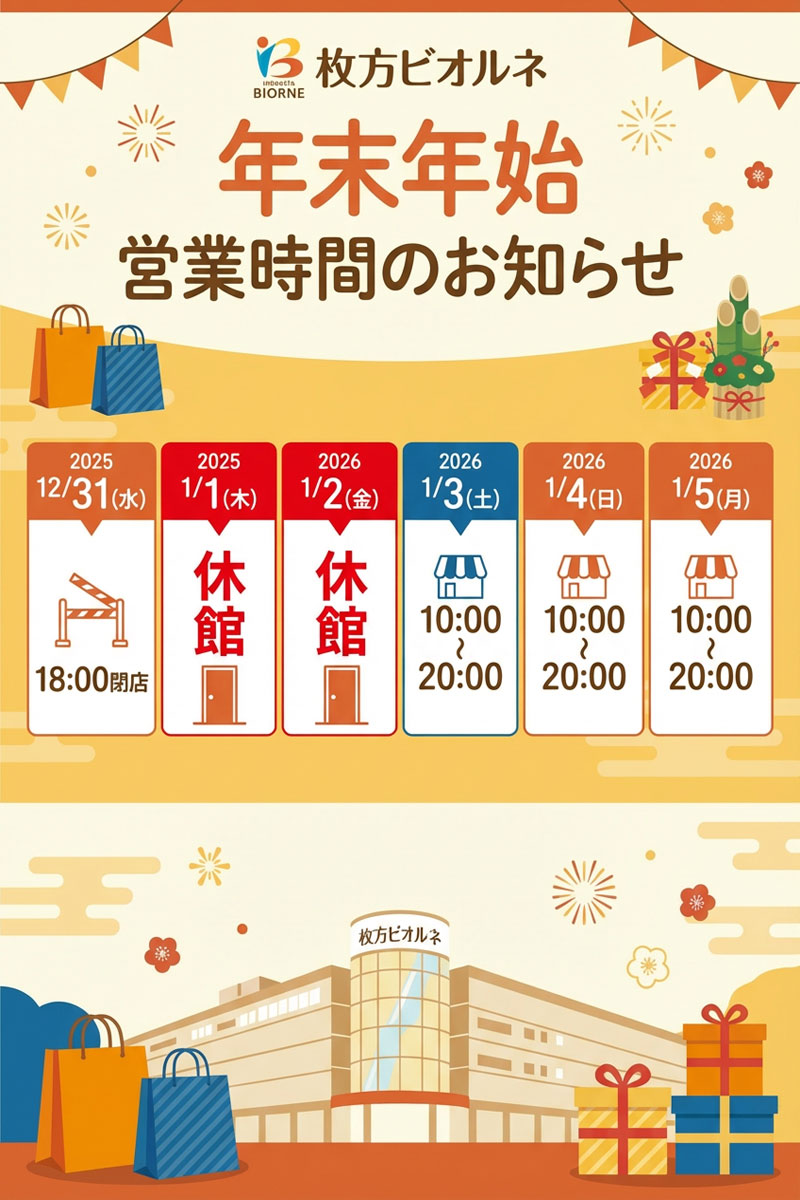 枚方市内の商業施設の年末年始営業時間の情報一覧2025→2026【ひらつーまとめ】