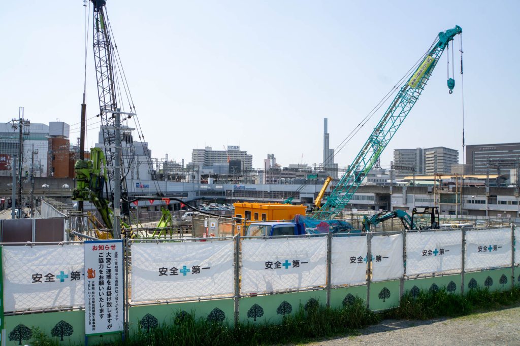 ■枚方市駅前の高さ120m超の巨大施設ができる場所の様子。大きな乗り物集結してた