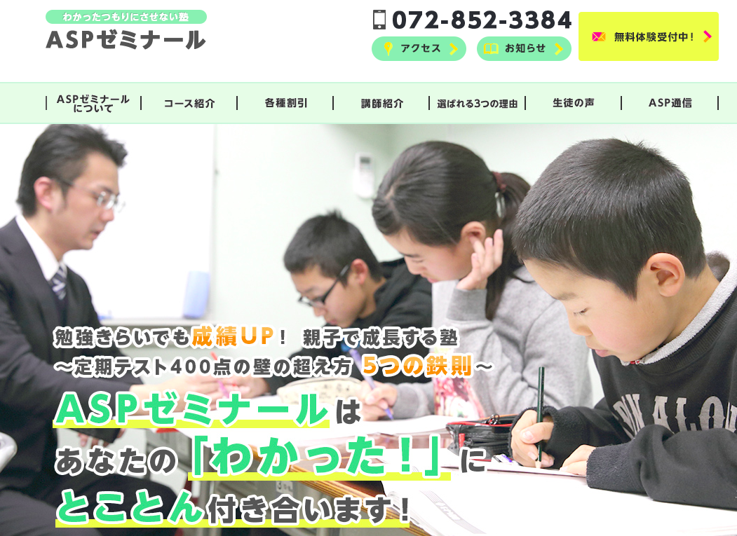 小中高生向けの学習塾や予備校を14校展開していて、枚方には枚方本校・楠葉本校・長尾校があります。授業は少人数制でしっかりと目の届く指導をしてもらえるのが特徴。