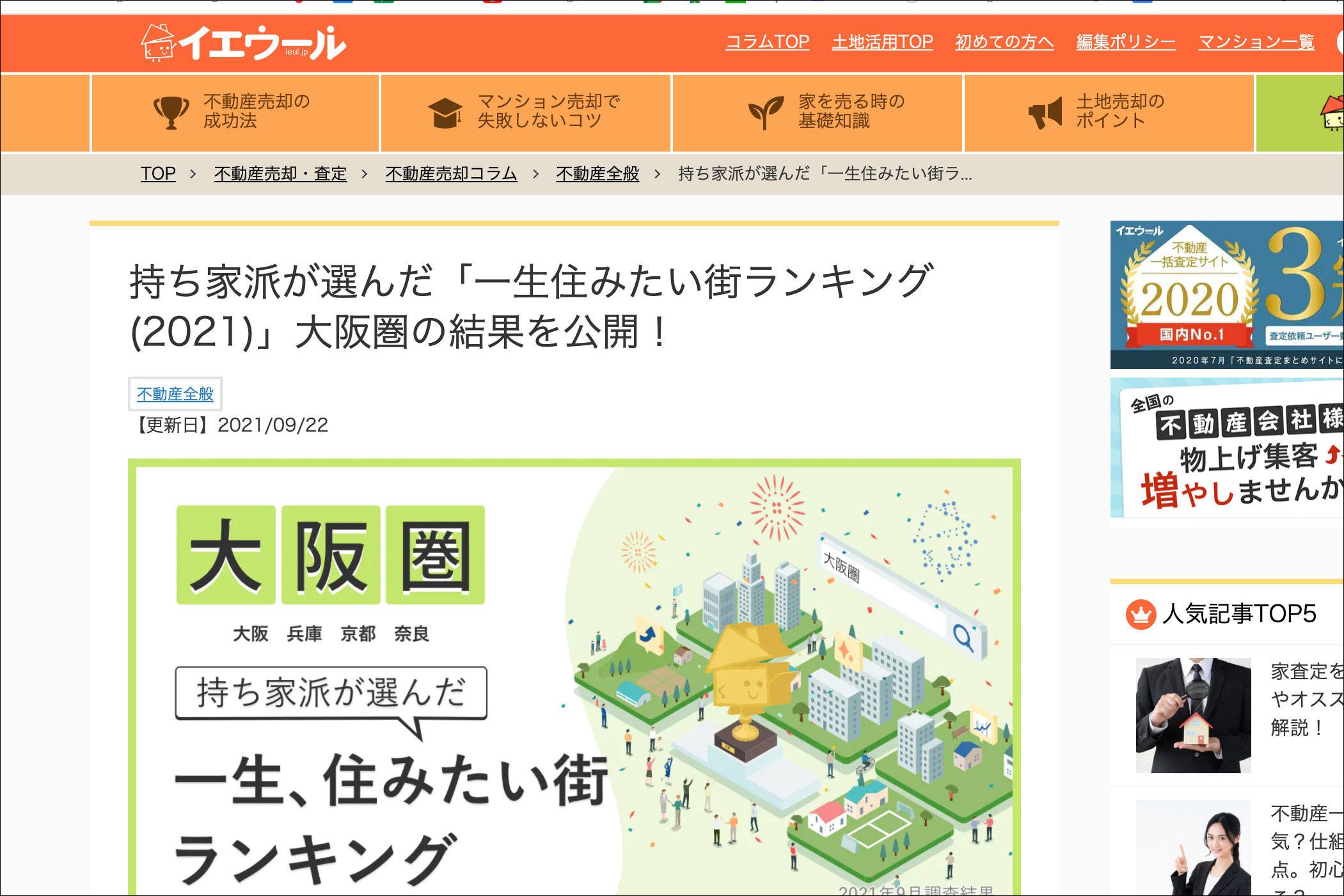 現在、ランキングをみたところ1位が豊中市、2位が大阪市北区、
