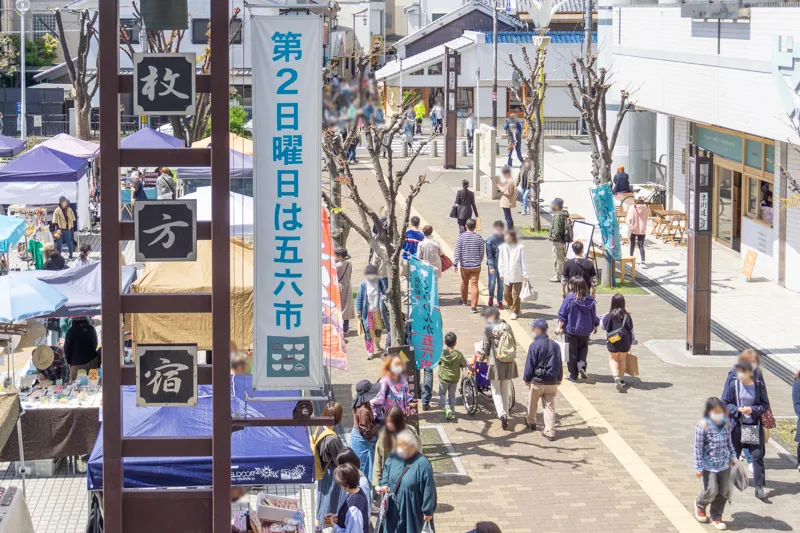 五六市(ごろくいち)とは、毎月第2日曜日に枚方市駅~枚方公園駅の京街道沿いで開催されている、雑貨や食べ物など毎回約200店舗の出店がある手作り市。