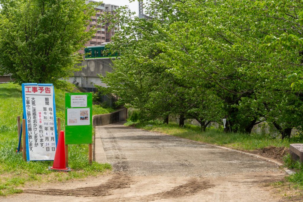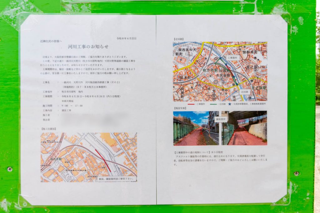枚方市駅ちかく天野川ぞいの砂利道が舗装されるようです。