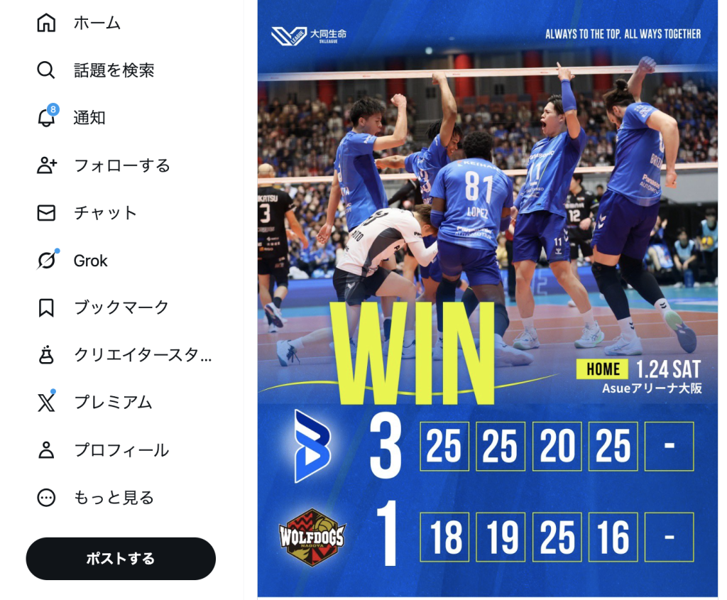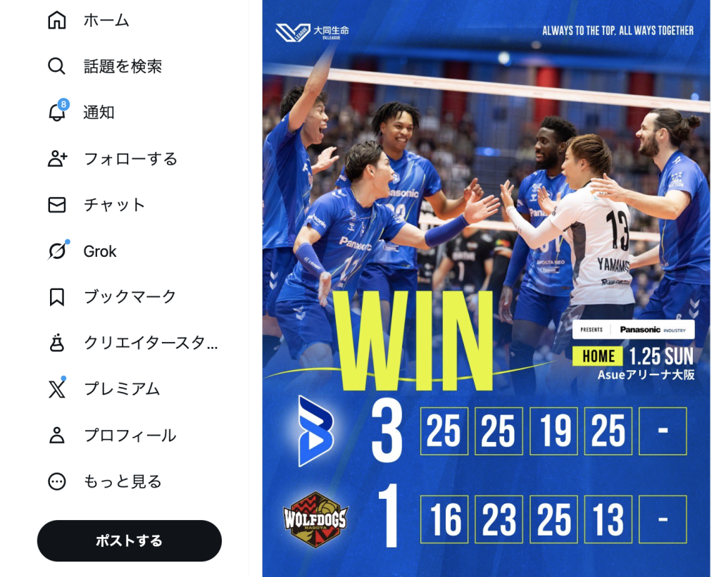 枚方市が本拠地の大阪ブルテオンの「大同生命 SV.LEAGUE」の試合結果をお伝えします。