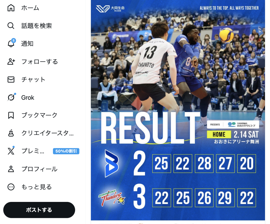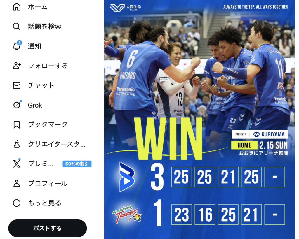 ©大阪ブルテオンの公式Xより