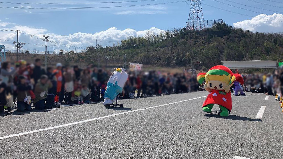 「いすレース」とは事務いすに座って行うレースで、今回はブランチ松井山手の敷地内でご当地キャラ達のゆるーいレースを観戦することができます♪