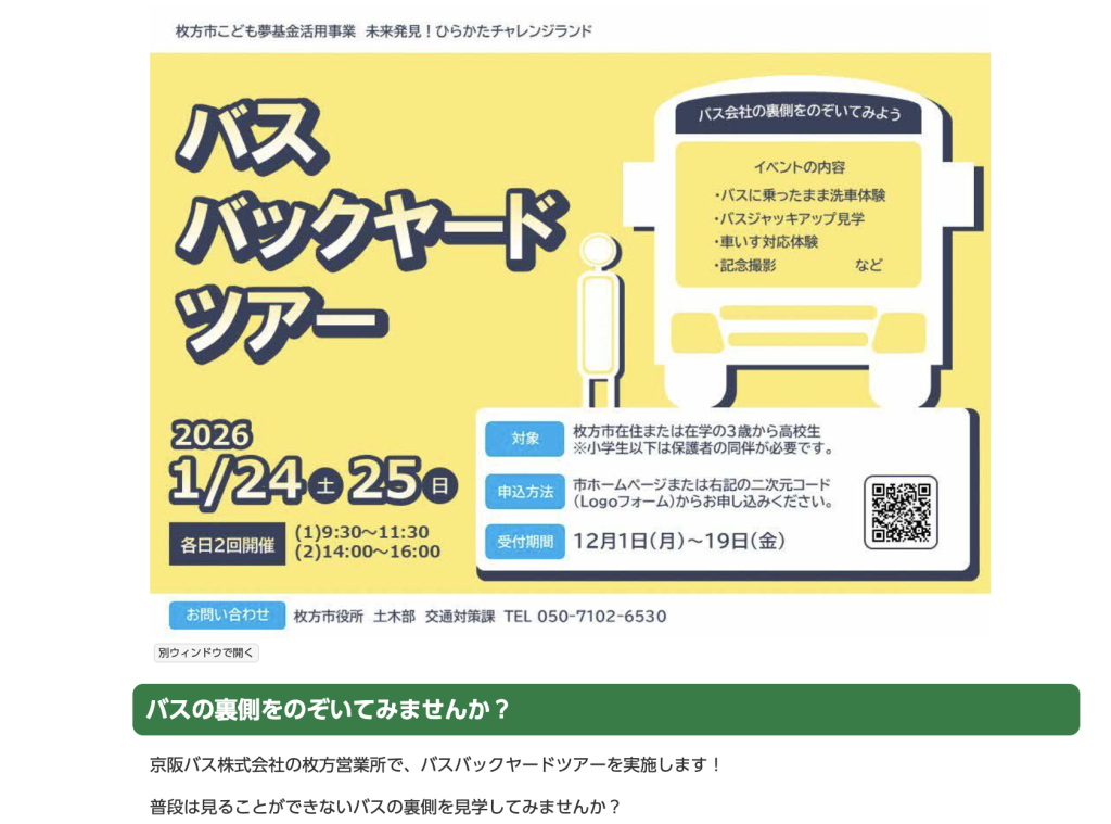京阪バス枚方営業所で「バスバックヤードツアー」が開催されるようです。