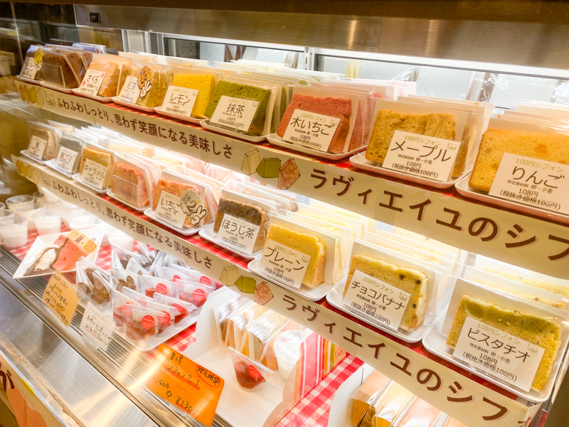 種類がたっくさんあるシフォンケーキは1つ108円税込!