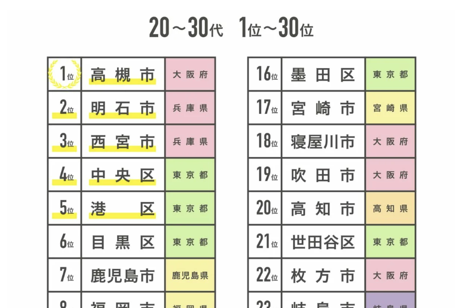 年齢別の20〜30代ランキングでは、枚方市は22位にランクインしています。