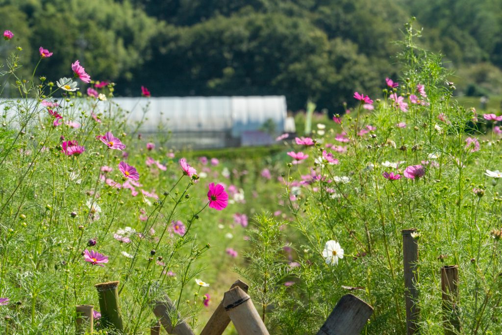 穂谷のコスモスが見頃を迎えています。