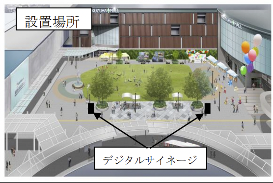 市のリリースによると、現在環境整備工事が行われている樟葉駅前広場にてデジタルサイネージを2台設置し、即時性のある市政情報の発信、また、広告収入による芝生広場の維持管理財源捻出の可能性、その持続性などについて検証する社会実験を行うそう。