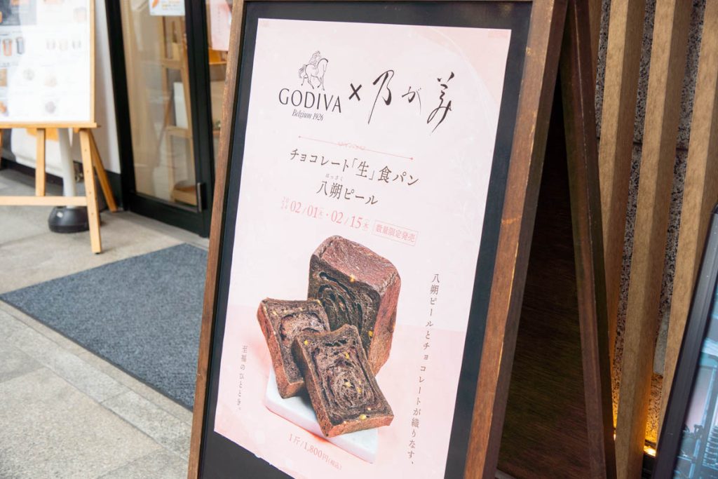 「ゴディバ×乃が美 チョコレート『生』食パン 八朔ピール」は2月15日までの販売だそうです。