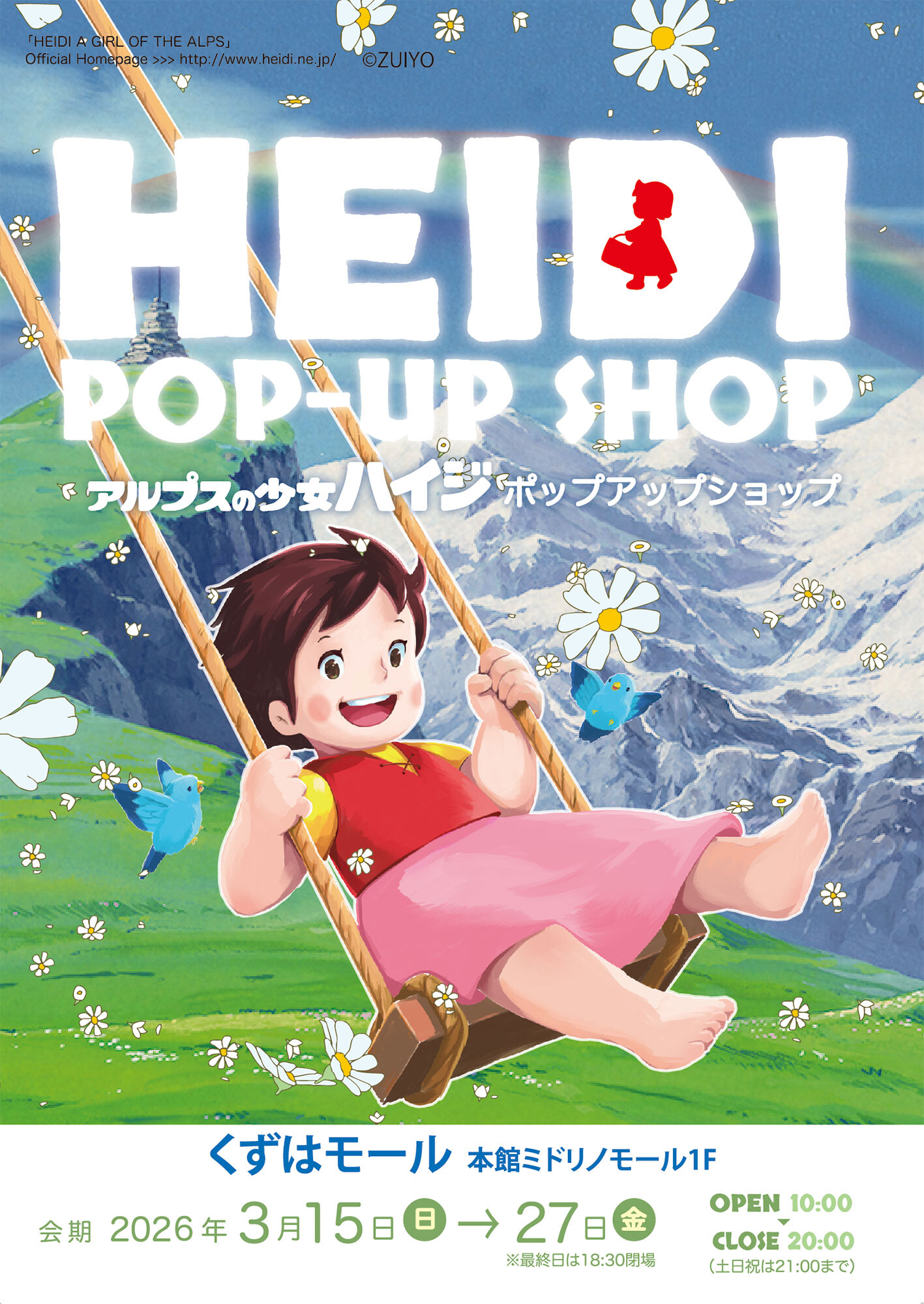 くずはモールの公式サイトによると「アルプスの少女ハイジ」のポップアップショップが3月15日から開催されているとのこと。