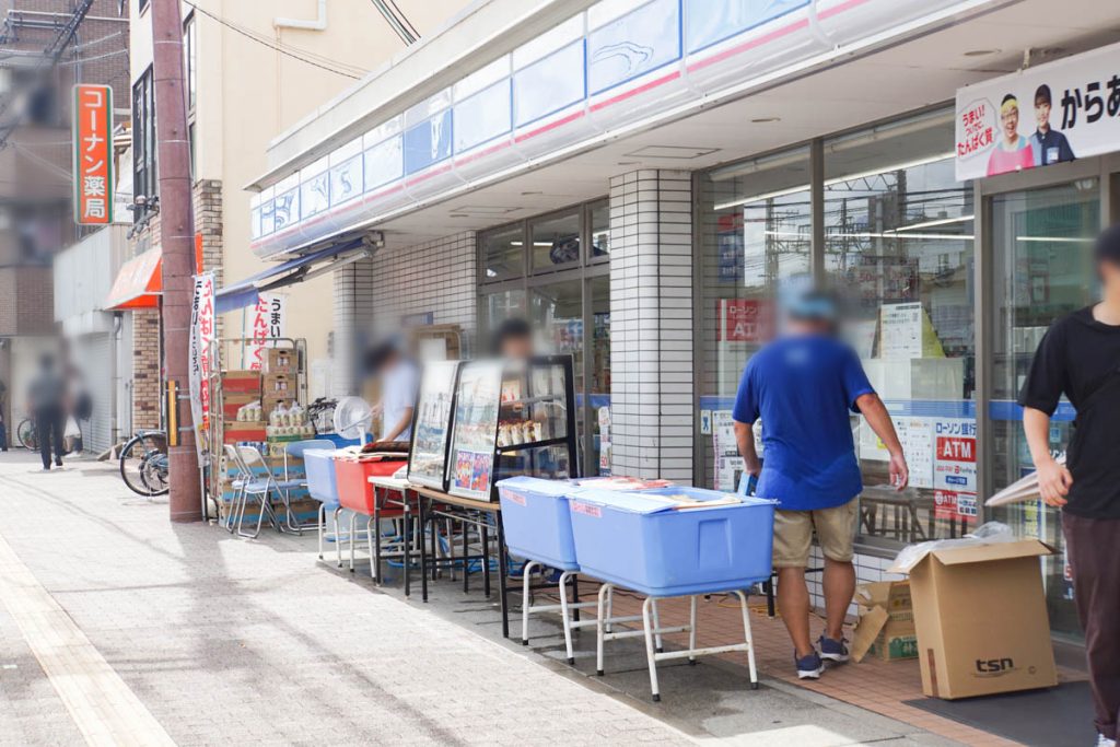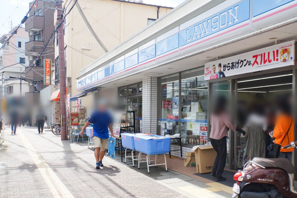 枚方公園駅前のローソン。13時くらいの時点でだいぶ混んでました。