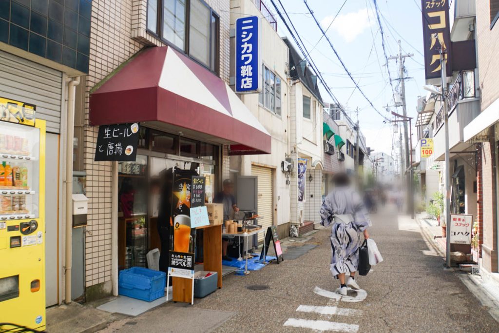 駅から河川敷までの道でも、いろんなお店が店先で唐揚げやビールを販売していたり。お祭り感!