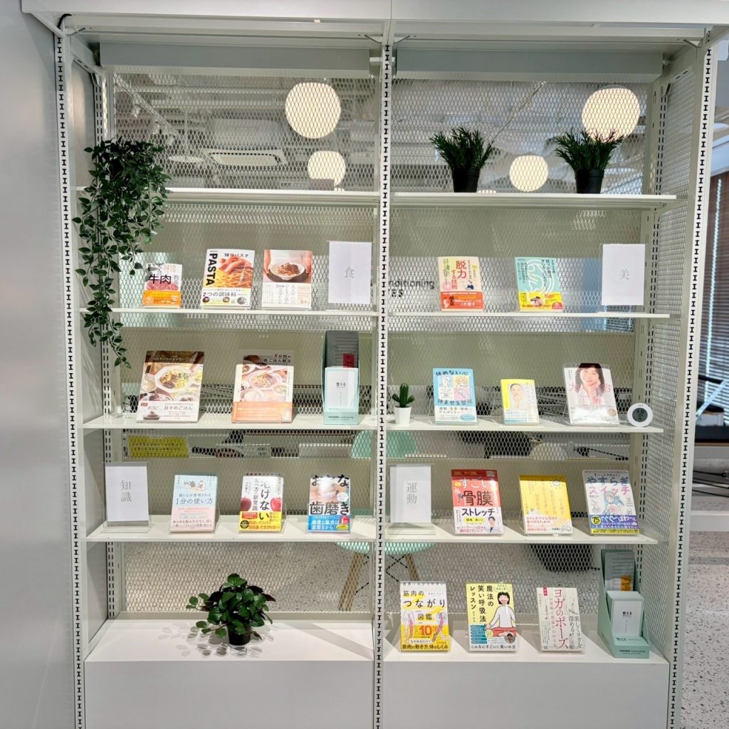 運動・美・食・暮らしをテーマに代官山 蔦屋書店コンシェルジュが選書した書籍を揃えたブックラウンジを併設。書籍はテーマに合わせて毎月入荷。レッスン前後30分、読書をお楽しみいただけます。