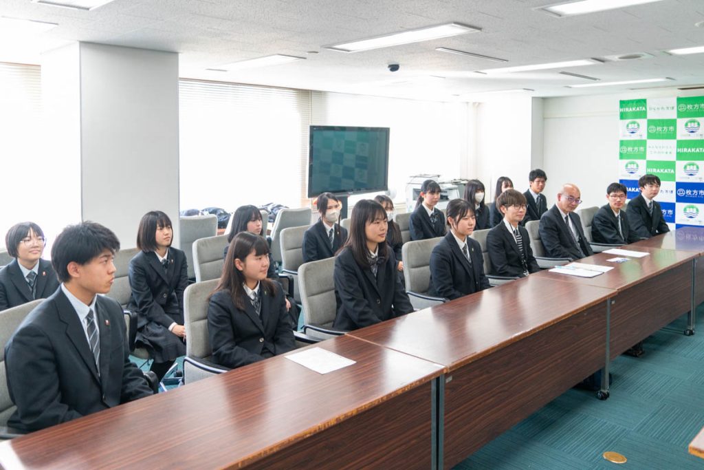 先日「高校生万博チーム」に参加する枚方高校の生徒らによる、枚方市役所への表敬訪問がありました。