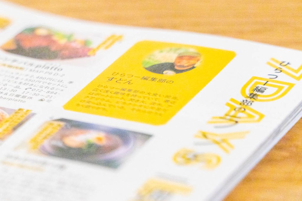 「編集部のランチ一週間」というコーナーがありまして、ひらつーやねやつー、もりかどからスタッフオススメのグルメ情報も載っています!