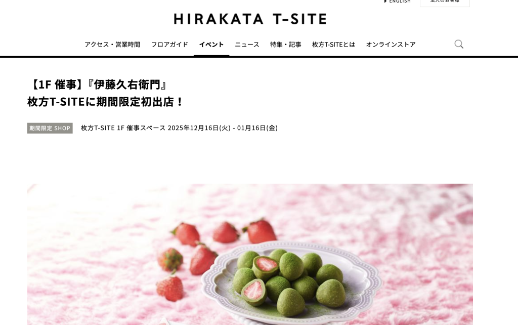 枚方T-SITEの公式サイトを見てみると「伊藤久右衛門」が初出店ということが書かれています。