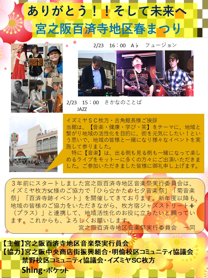 イズミヤショッピングセンター枚方では、「音楽・健康・学び・笑」をテーマに、街を元気にしたい!という思いで、地域の皆さんと一緒に様々なイベントを実施してきたそうです。