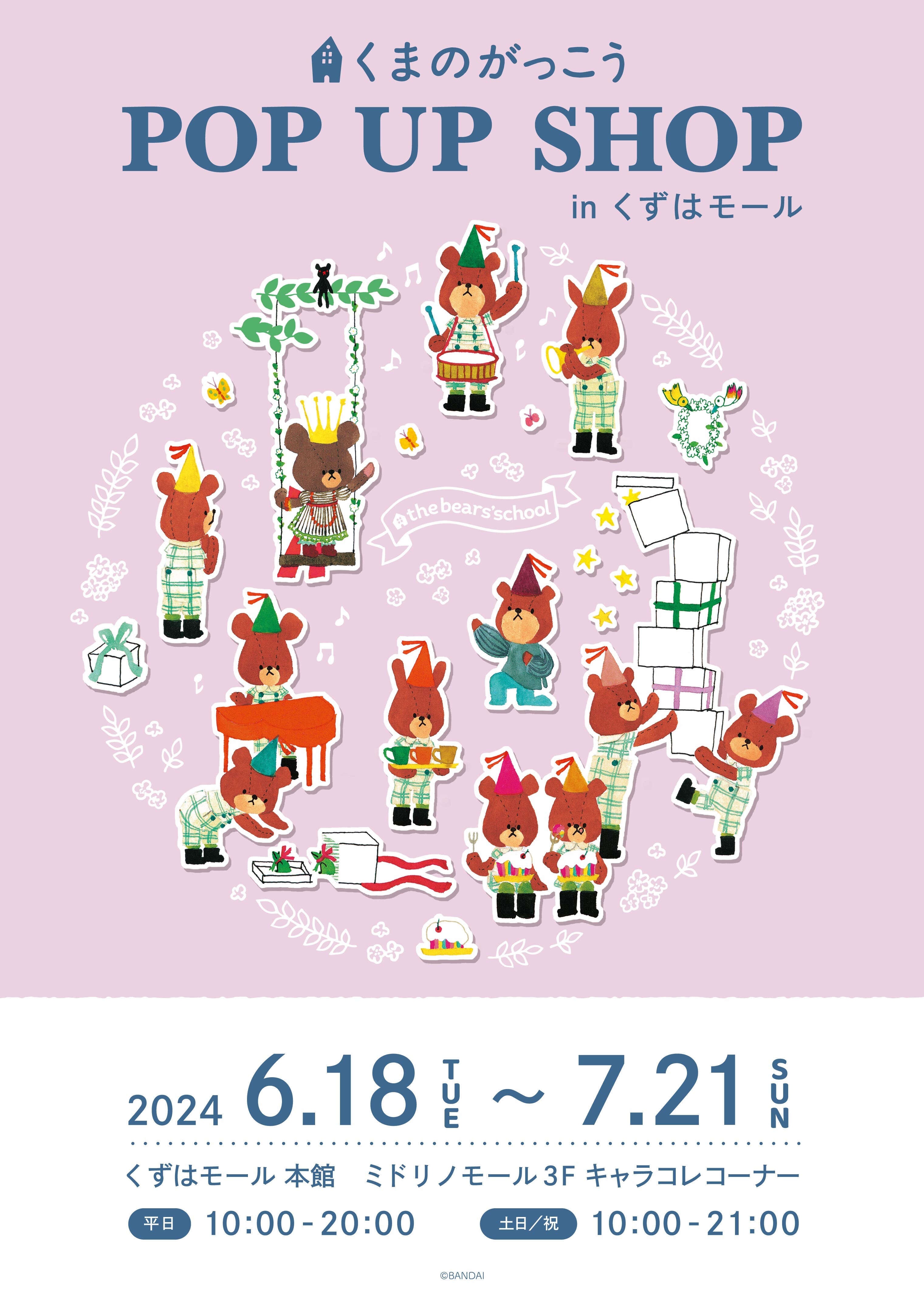 くずはモールで「くまのがっこう POP UP SHOP in くずはモール」が期間限定で開催されるようです。