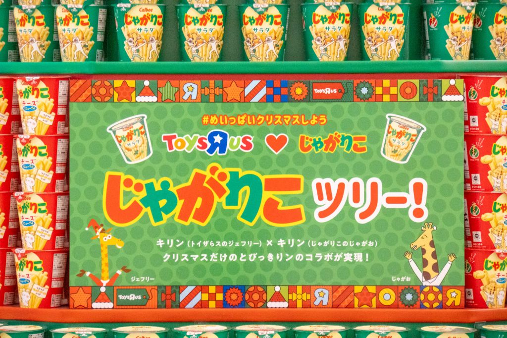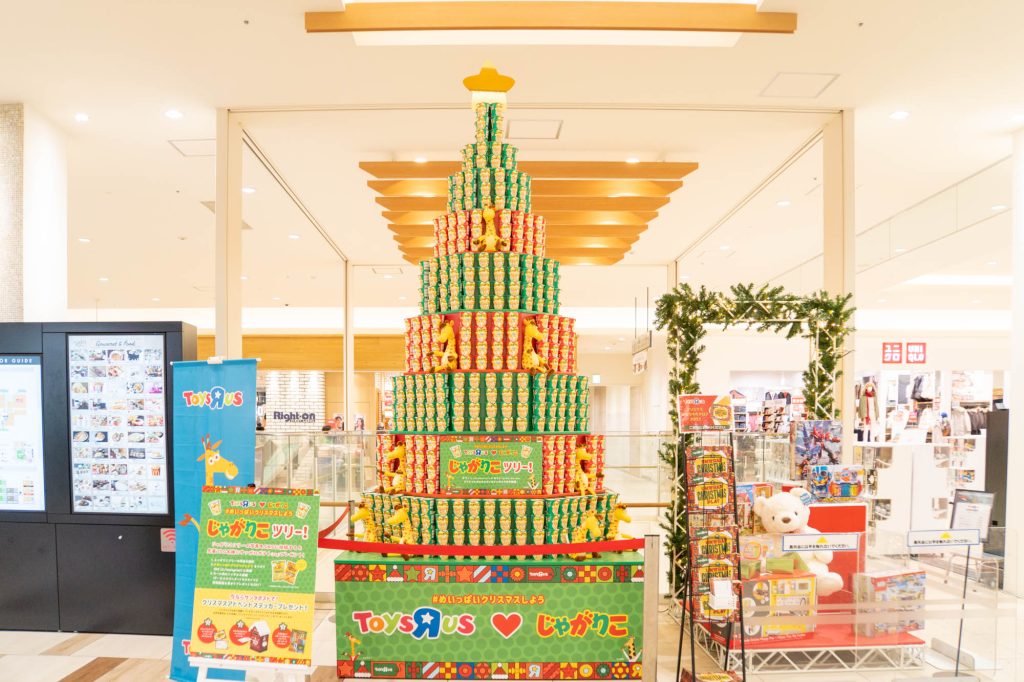 「じゃがりこツリー」は、キリン(トイザらスのジェフリー)×キリン(じゃがりこのじゃがお)のクリスマス限定コラボ企画で、日本ではここくずはモールと東京の錦糸町だけに設置されているそうです。レア!