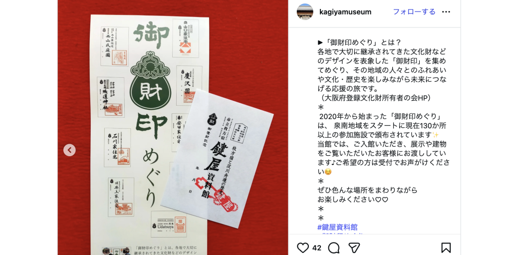 鍵屋資料館の公式Instagramによると、訪れた人を対象に「御財印」を用意していることが紹介されています。