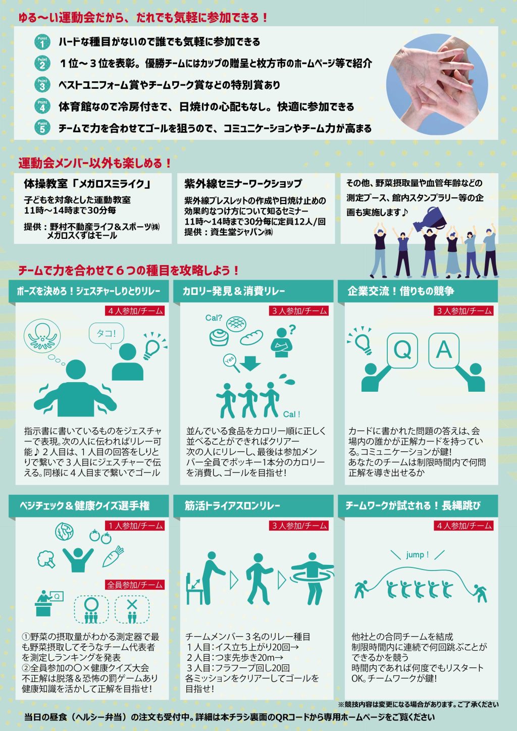 枚方市のHPによると、対象は「ひらかた健康優良企業」に登録している企業の方で、定員は先着30チーム。