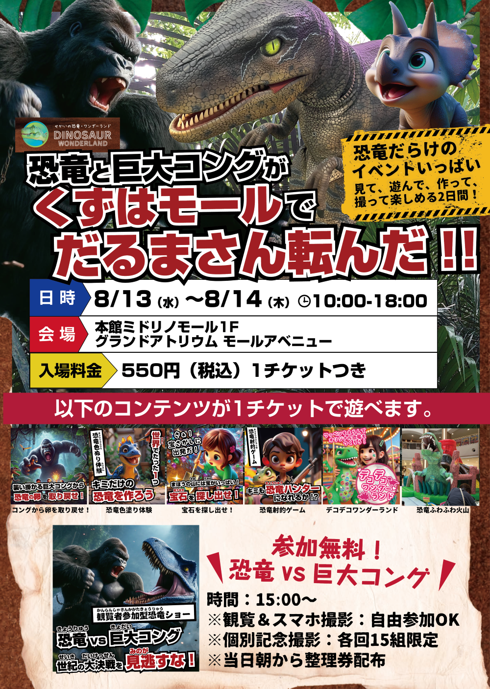 くずはモールで「せかいの恐竜・ワンダーランド」というイベントが開催されるようです。