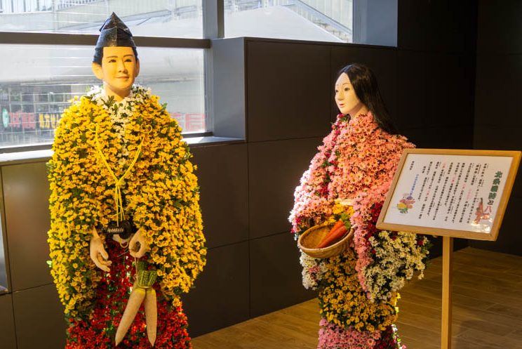 枚方市駅に北条義時と八重の菊人形が設置されています。