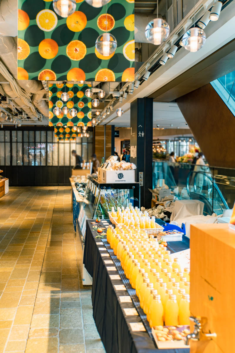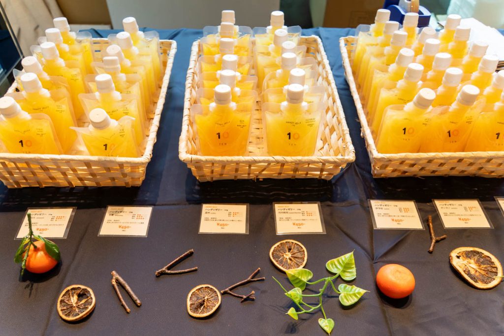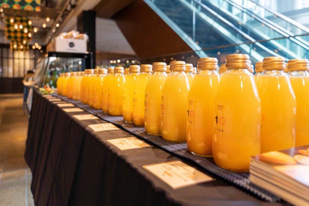 イベント会場にはみかんジュースがずらりと並んいて、他にも、