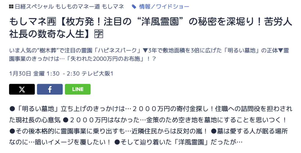 1/30もしマネ再。枚方発の洋風霊園特集回