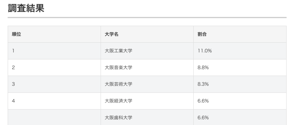 そして「大阪歯科大学」が同率4位にランクインしていました。枚方にある大学が2つもランクインしていますね〜!他の順位が気になる方は公式サイトをご覧になってみては。