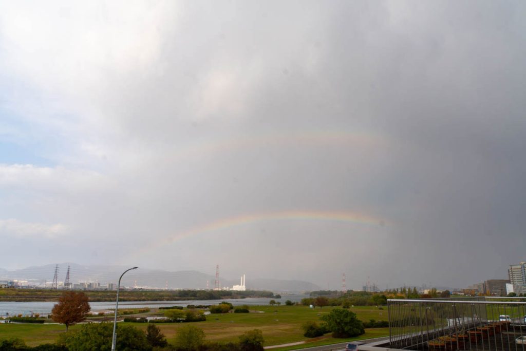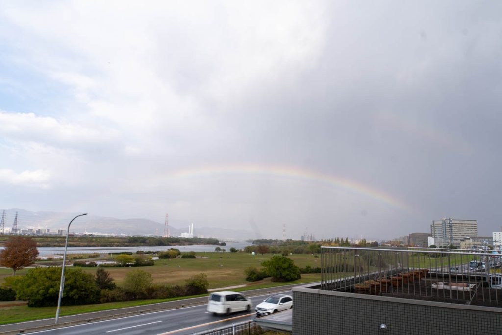 急な雨でひらつー事務所内は「もしもし?洗濯物いれてくれへん?」という電話タイムが始まりましたが、虹がでてほっこり〜
