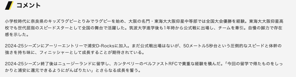 ジャパンラグビーリーグワンの公式サイトを見ると、東海大学付属大阪仰星高校出身ということがわかります。