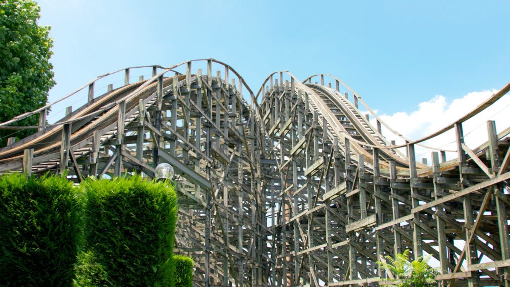 そう、発見はつねに、誰もが見過ごす場所にある。夏のある朝、園長は木製コースターエルフの乗り場に向かっていた。何百回も歩いたいつもの坂道を登り切った先にある通称「エルフ中庭」。ふと目線をすこし上げたある一点からそのマークは見えた。「あのロゴのかたちや・・・」ジェットコースターの山と谷が織りなす偶然。思わず園長は見とれて言葉を失った。