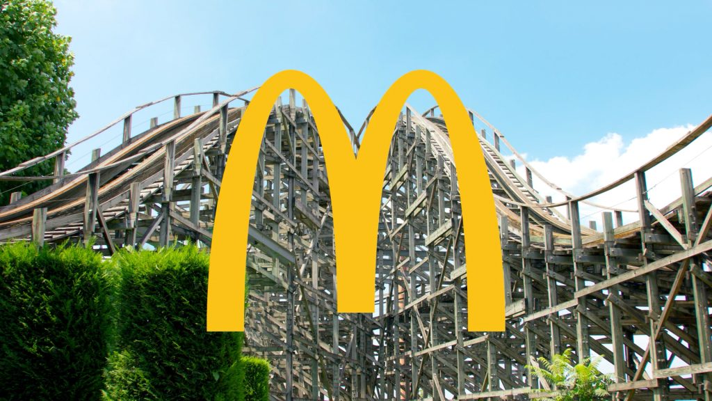 木製コースターエルフのコースの形が、あのロゴのかたちに似ていなくもないことから、マクドナルドとコラボレーションした、奇跡のセットメニューが誕生。