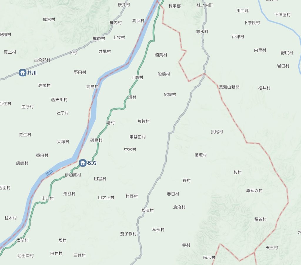 れきちずを見てみるとこのとおり、枚方も江戸時代後期の村表記に。これを自由にズームできたりするのがすごいな〜と!