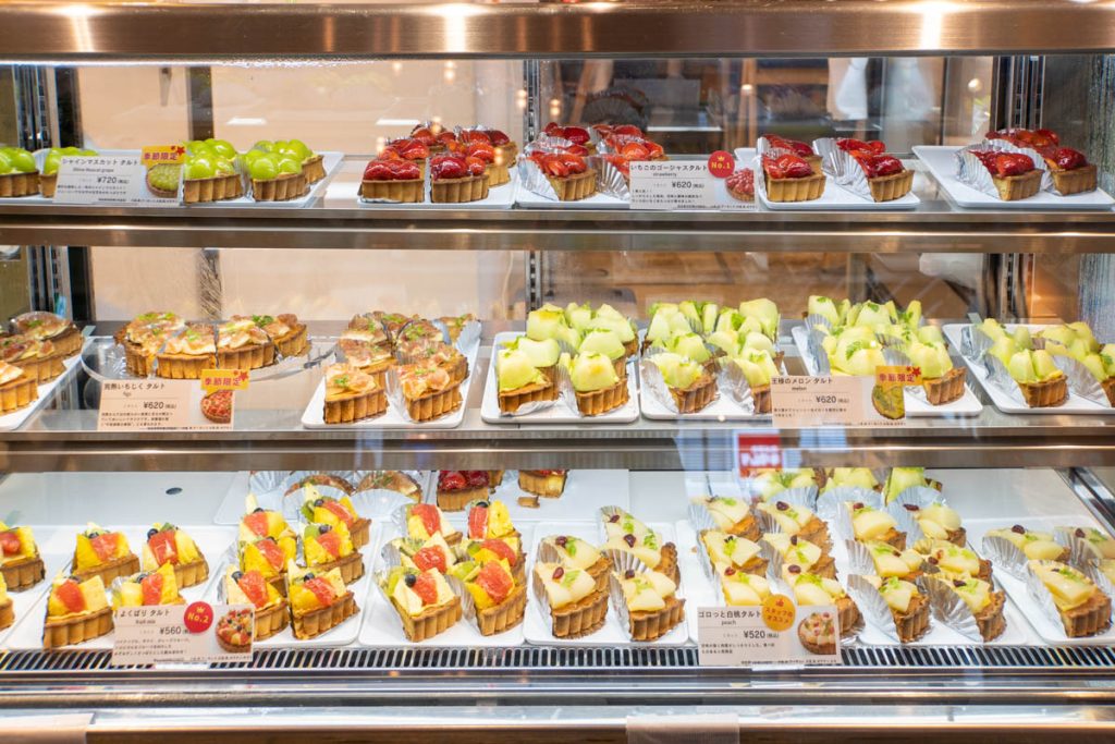 ショーケースにはたくさんのタルトケーキが並んでいます。キラキラしてる…!
