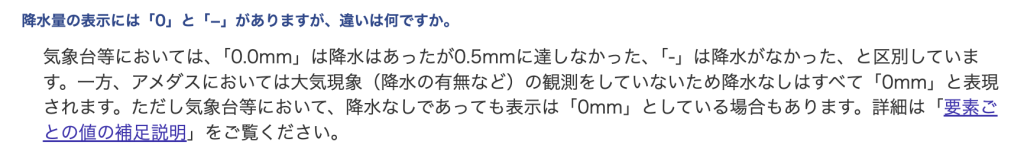 気象台等において「0.0mm」は、降水はあったが0.5mmに達しなかった