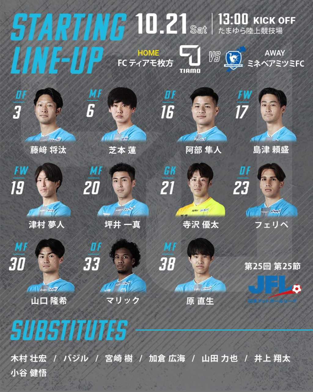 枚方からJリーグを目指すサッカークラブ「FCティアモ枚方」の10月21日に行われたvsミネベアミツミFCの試合結果をお届けします。