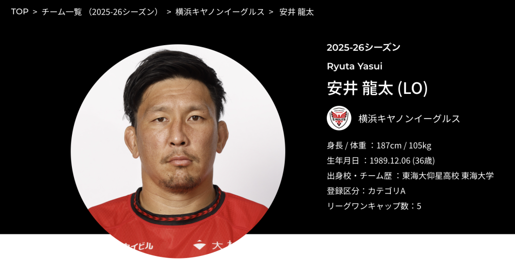 ラグビー・横浜キヤノンイーグルスに所属する安井龍太選手は東海大学付属大阪仰星高校出身のようです。