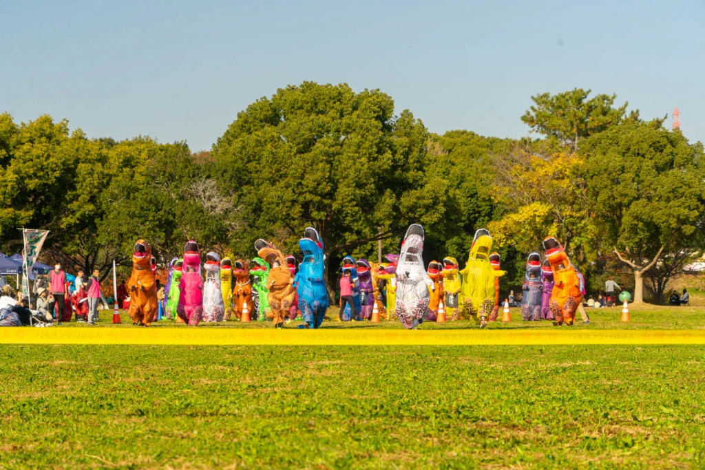 姉妹サイトねやつーより 2023年12月に深北緑地で開催されたティラノサウルスレースの様子
