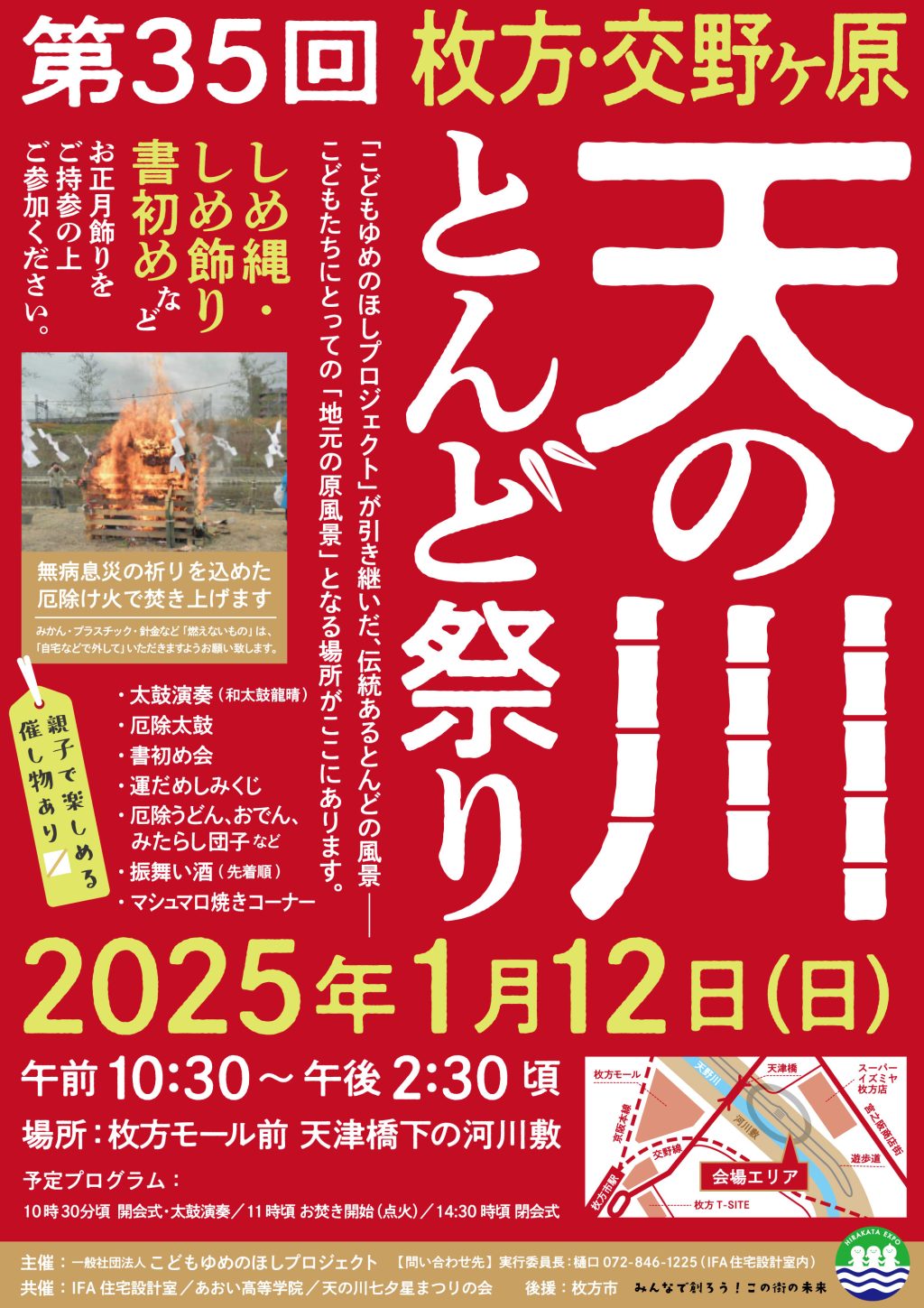 1月12日に天津橋周辺で「天の川とんど祭り」が開催されるようです。
