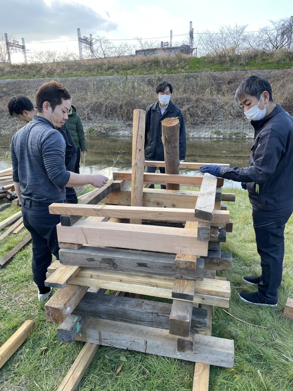 とんどの木組みは、前日にスタッフさん総出で組み上げるそうです!